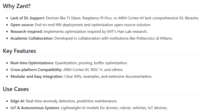 Zant(Zig-Ant)是一款开源SDK,用于在微控制器上部署优化的神经网络(NN)。