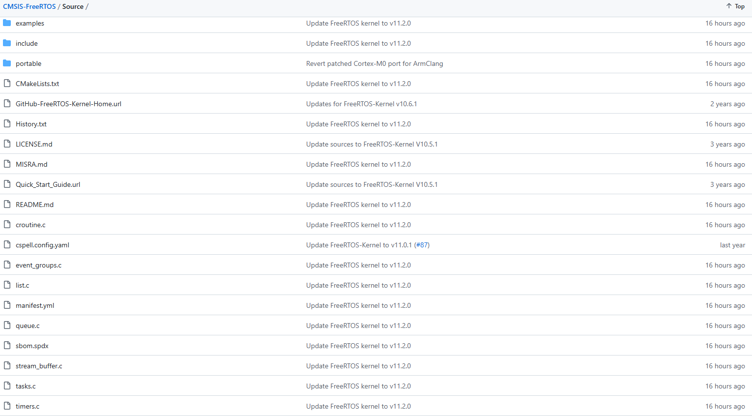 前两周FreeRTOS内核本身升级到了最新的V11.2.0版本,这次ARM维护的CMSIS-FreeRTOS也紧跟其后升级到最新的11.2.0版,所有内容都已经更新好了,对应tags估计还得过几天更新