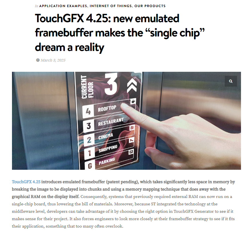 (1)TouchGFX V4.25发布,引入模拟帧缓冲技术,显著减小RAM需求