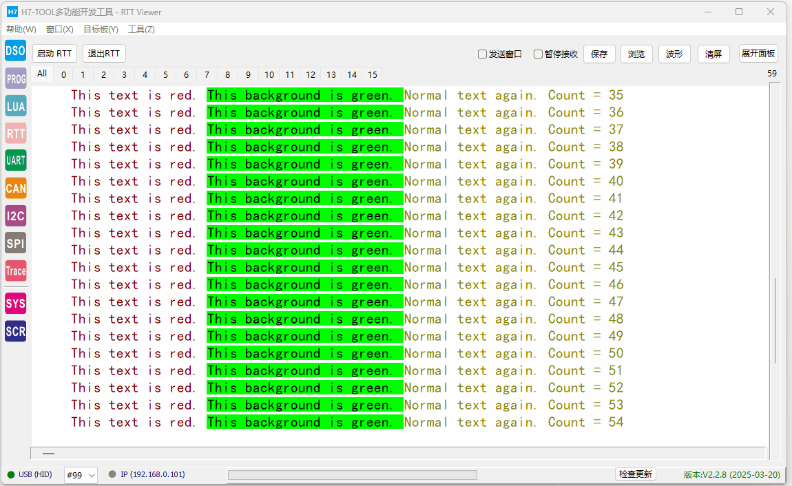 (3)H7-TOOL的RTT Viewer功能再升级,支持MDK下载程序时断开RTT刷新,下载完毕自动重连