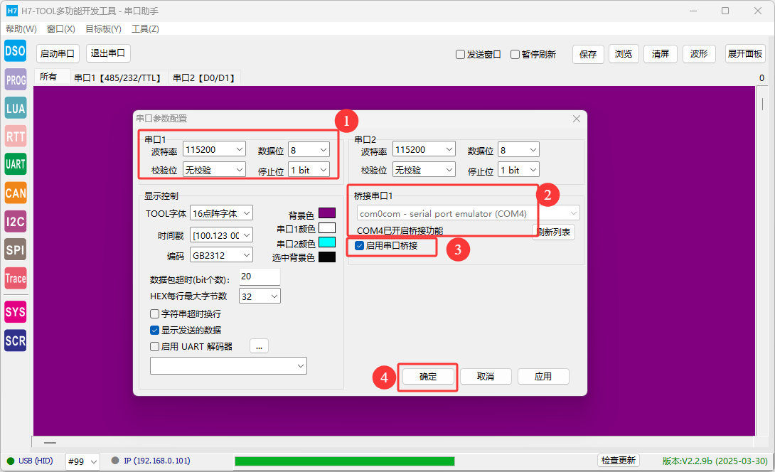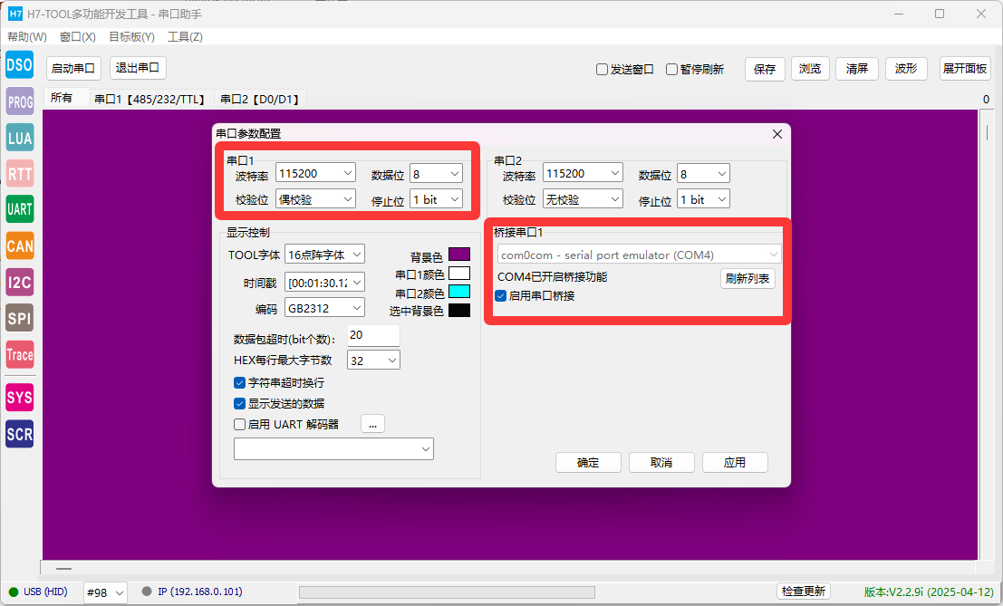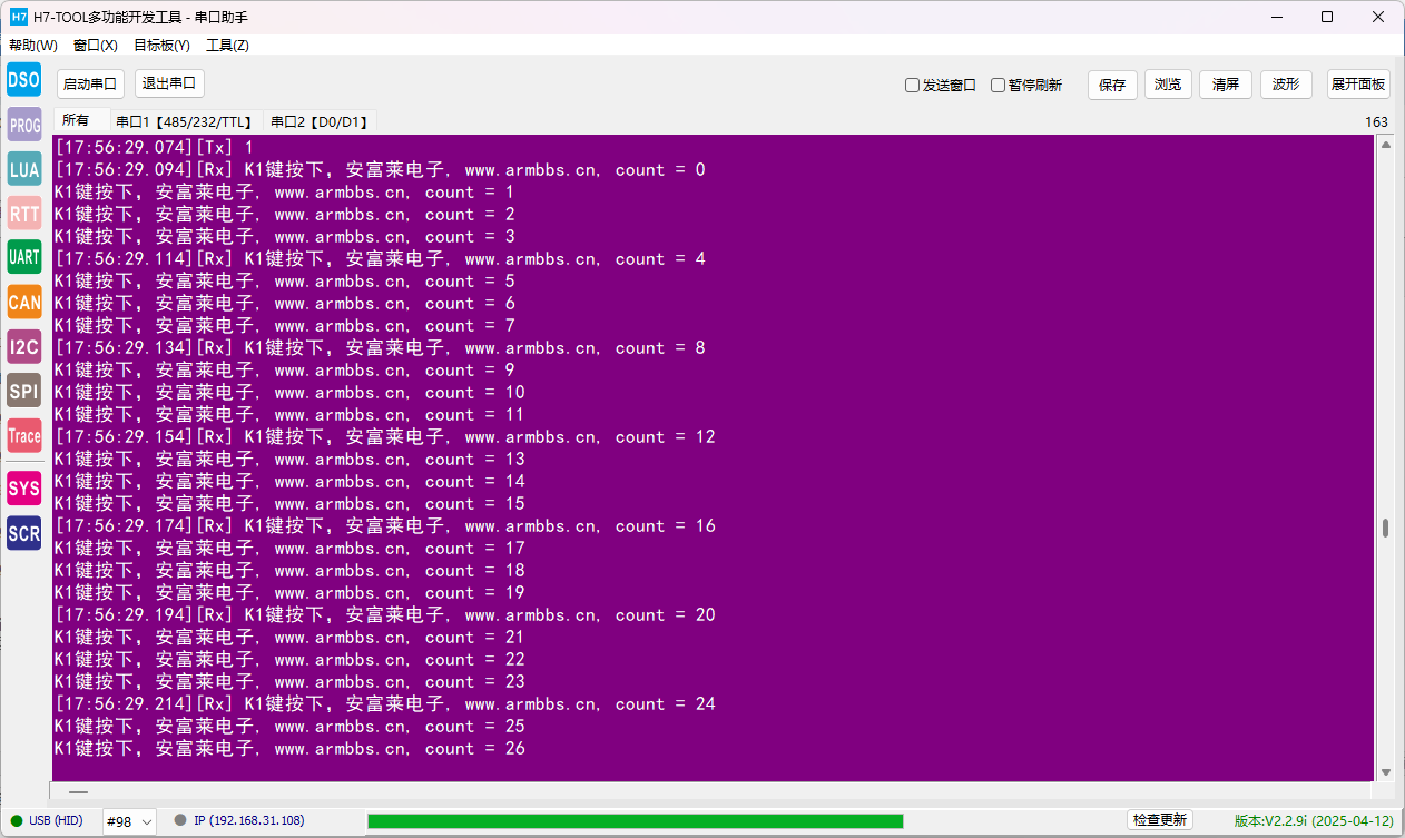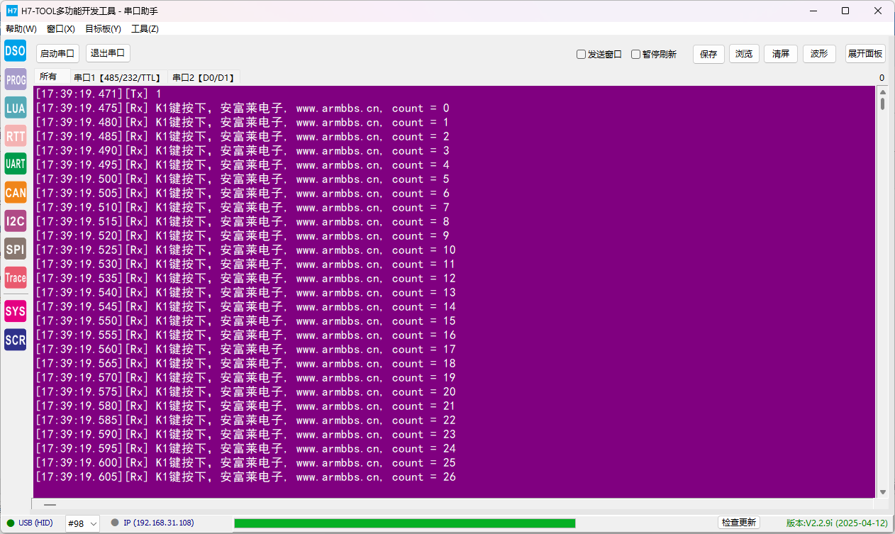 二、H7-TOOL高速HID免驱串口桥接各种第3方串口软件,支持与TOOL所有其它功能一起使用
