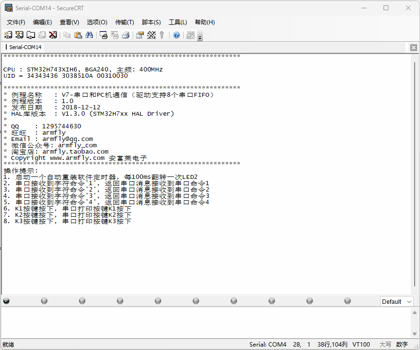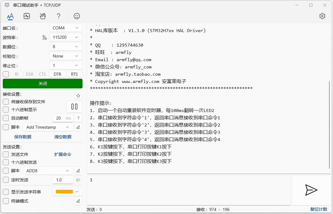 (3)波特率,数据位,停止位,校验位由TOOL上位机控制。推荐H7-TOOL和第3方串口软件配置一致即可,TOOL的其它选项不用管