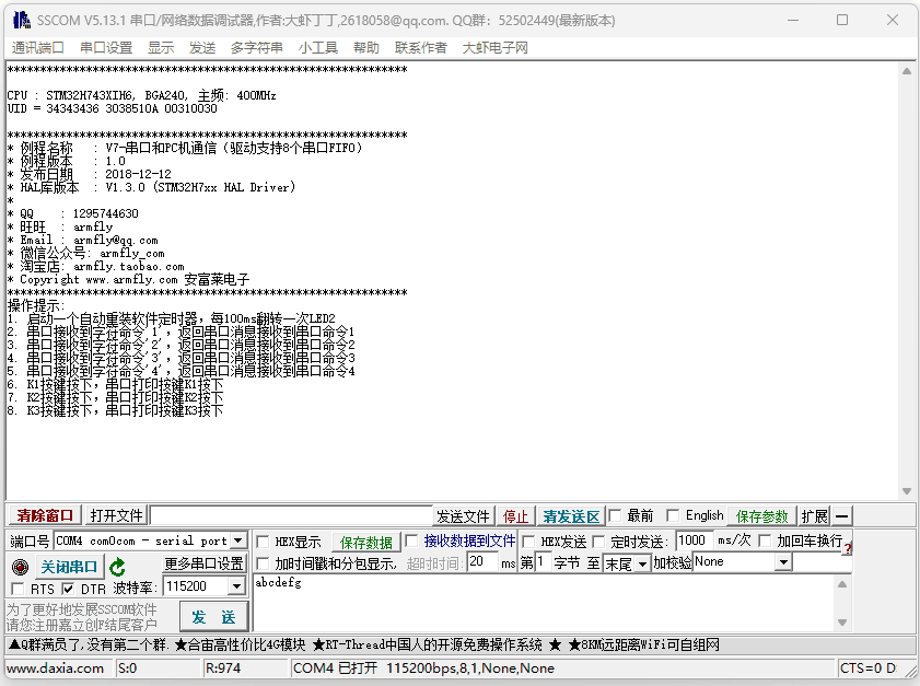 (5)MDK使用DAPLINK调试状态和第3方串口助手同时使用效果
