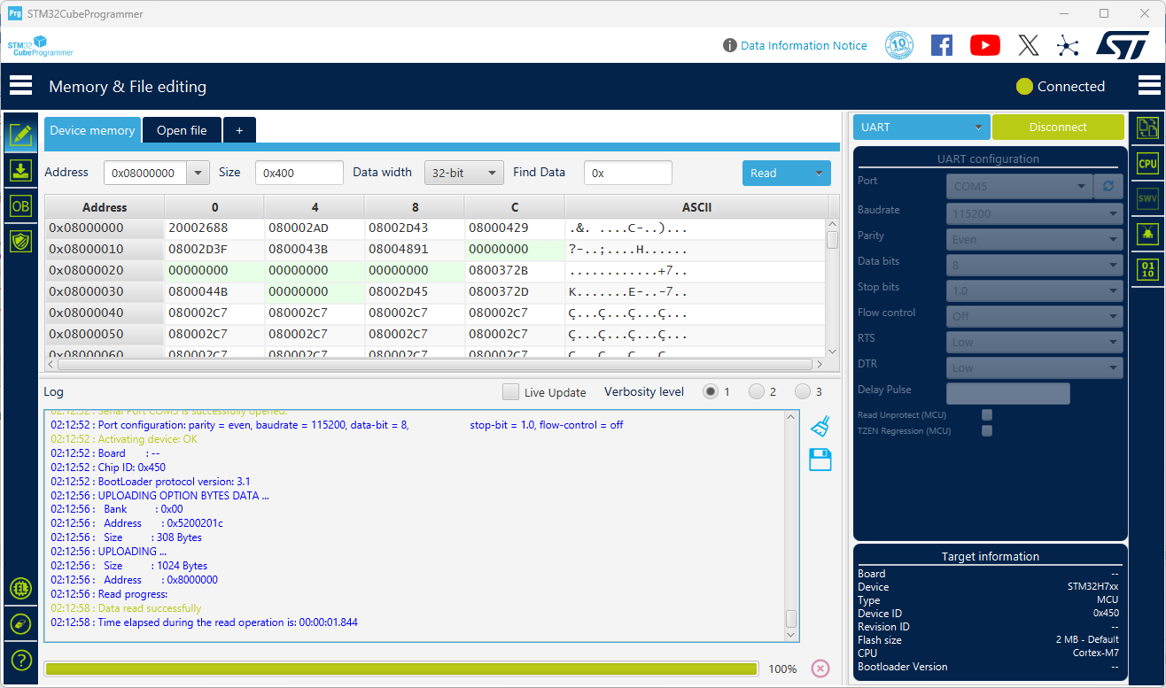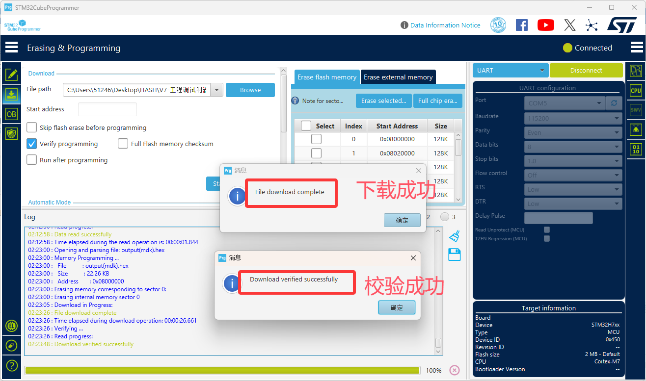(6)H7-TOOL的高速HID免驱桥接串口功能用在STM32CubeProg串口程序下载也没问题