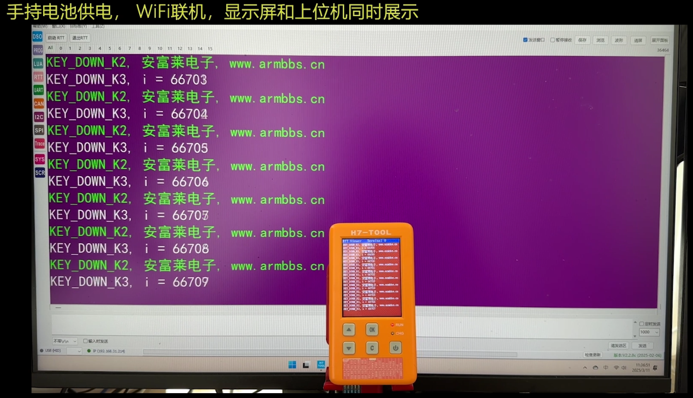 如果使用的H7-TOOL PLUS电池板,手持显示屏离线自动重连,也是没问题的,同时还可以wifi方式,连接上位机