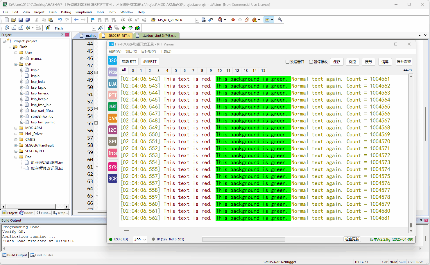 四、H7-TOOL的RTT Viewer功能再加强,支持MDK下载程序时断开RTT刷新,下载完毕自动重连
