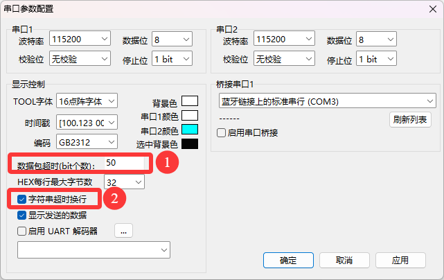 (2)桥接功能是原始数据的转发,数据编码设置是由第3方串口软件决定