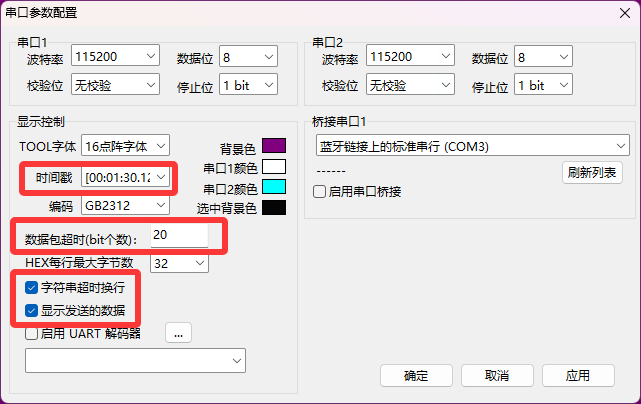 2、如果使能了时间戳,那么超时后,下次要展示的字符将插入新的时间戳,这个时间戳是us微秒精度的,由TOOL硬件提供。