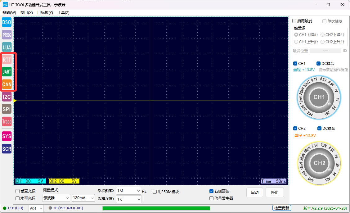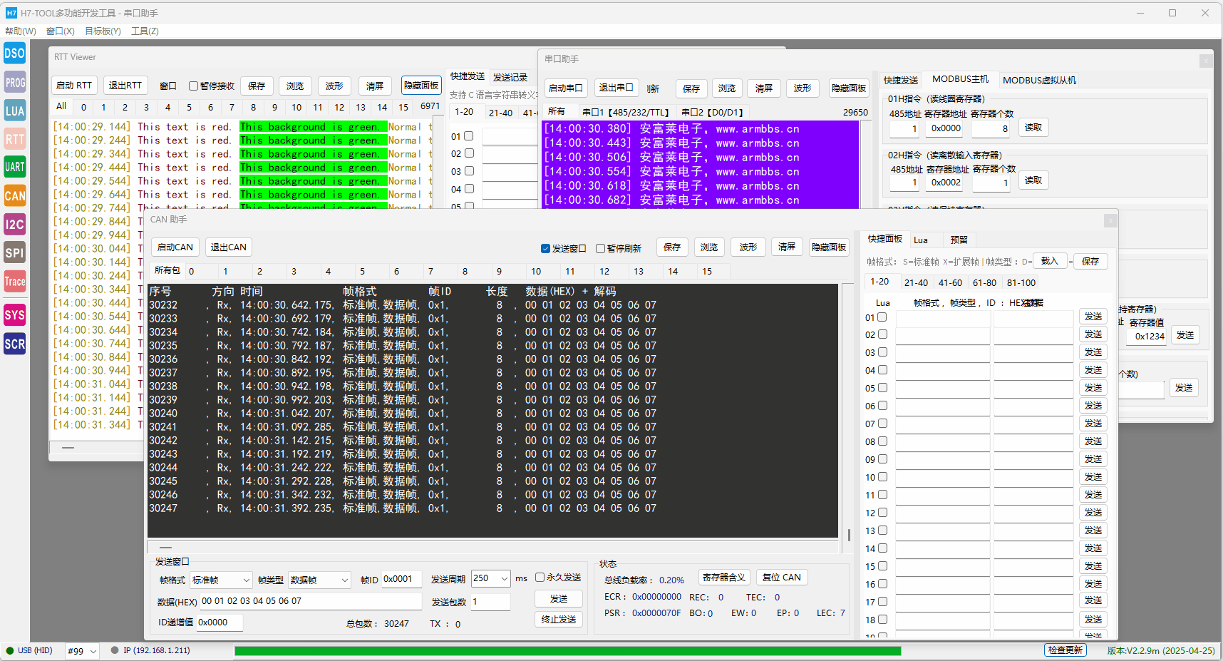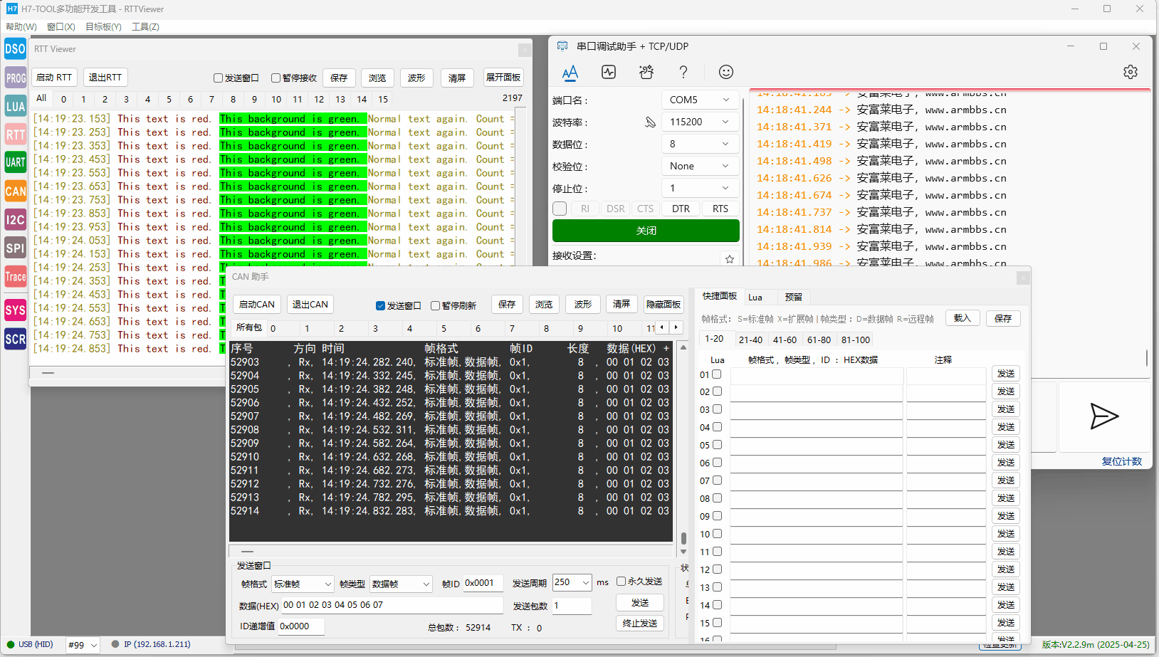 H7-TOOL固件2.29发布,支持各种第3方串口桥接功能,RTT自动重连,CAN/RTT/UART窗口独立同时刷新,增加多款脱机烧录(2025-04-30)
