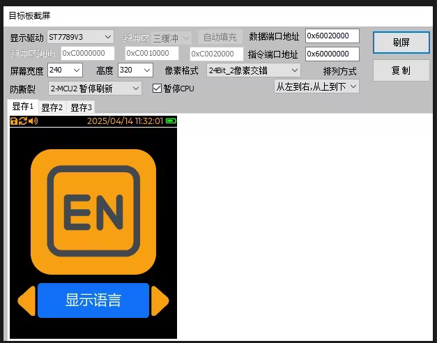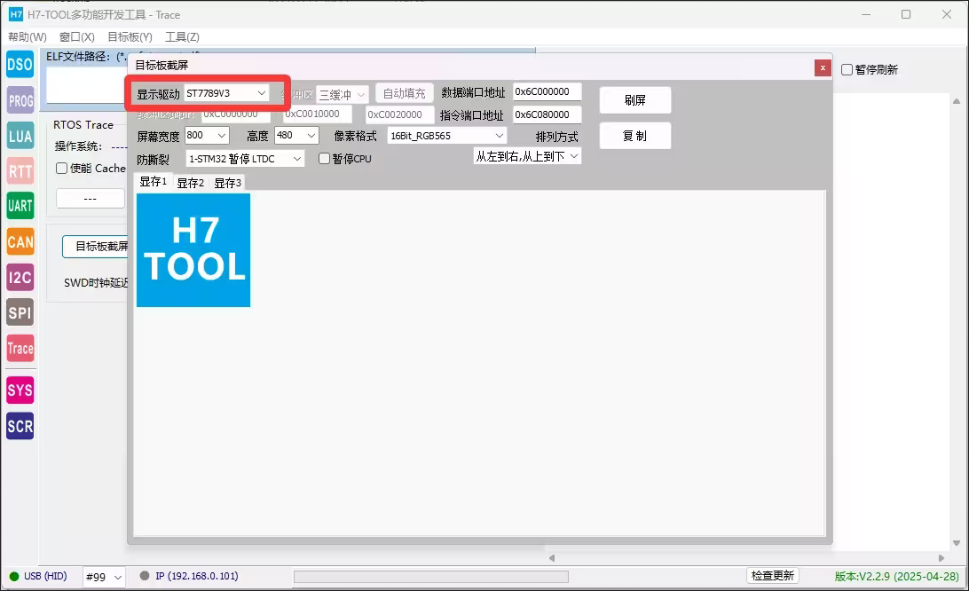 客户为H7-TOOL的截图功能增加ST7789控制器支持,无需内嵌代码,直接调试接口截图