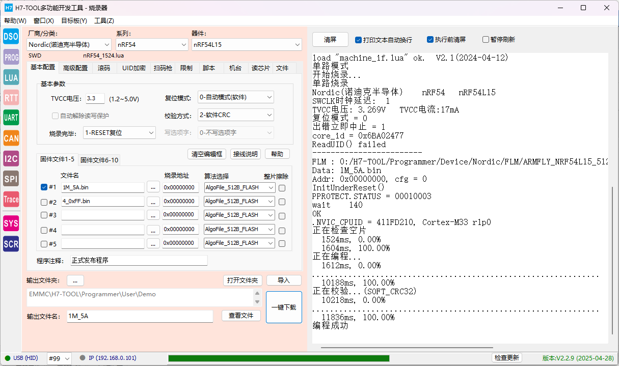 提升H7-TOOL自制nRF54L15脱机烧写算法文件速度,1MB程序仅需11秒,并且支持了UICR编程
