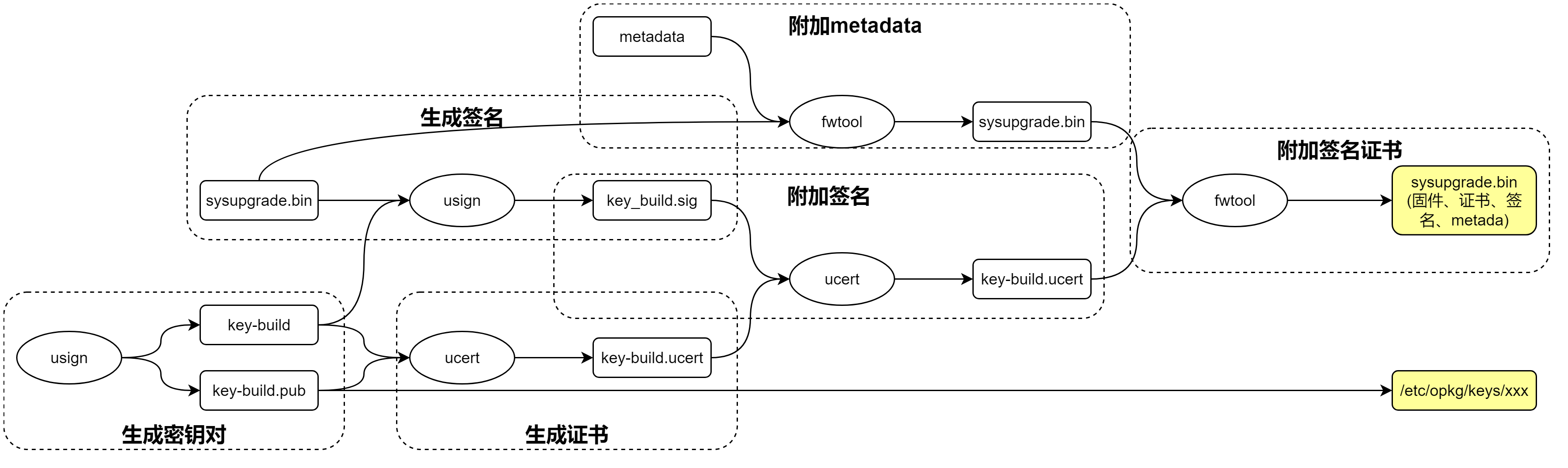 sysupgrade支持在编译的时候生成签名和metadata,在设备进行upgrade进行验签和metadata检查。