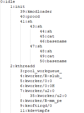 下面在cmdline中打开task_newtask/task_rename来记录线程创建轨迹,然后脚本解析呈现全景式的进程树。