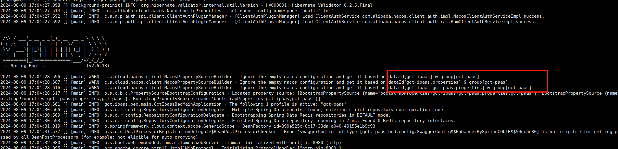 2.配置中心配置了gct-ipaas,发现日志里不再忽略gct-ipaas配置