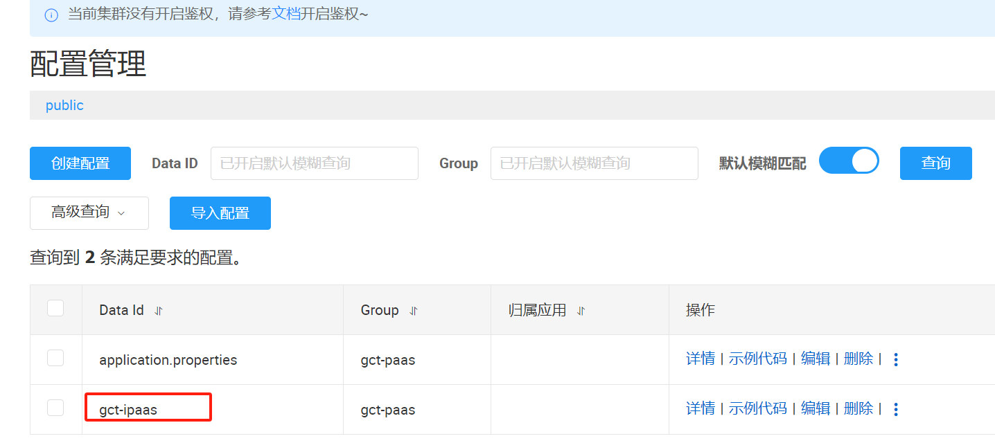 spring.application.name=gct-ipaas;spring.profiles.active=gct-paas - 会在配置中心查找 且配置优先级:gct-ipaas < gct-ipaas.properties < gct-ipaas-gct-paas.properties ;
