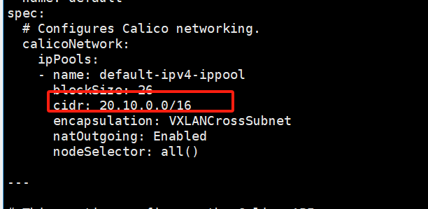 #修改custom-resources.yaml,cidr改成与k8s部署时,初始文件init.defaulsts.yaml里podSubnet值一致