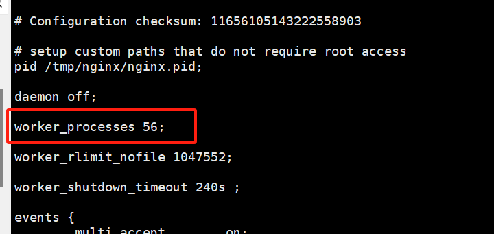发现worker_processes 值等于cpu数量, 默认应该是auto模式了