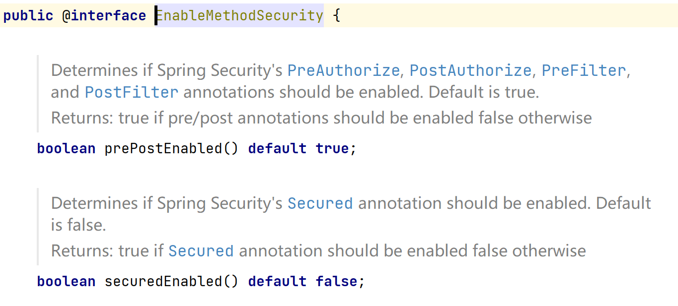 @Secured | 指定处理单元的权限和角色,参数为数组,使用需要开启@EnableMethodSecurity注解的securedEnabled |