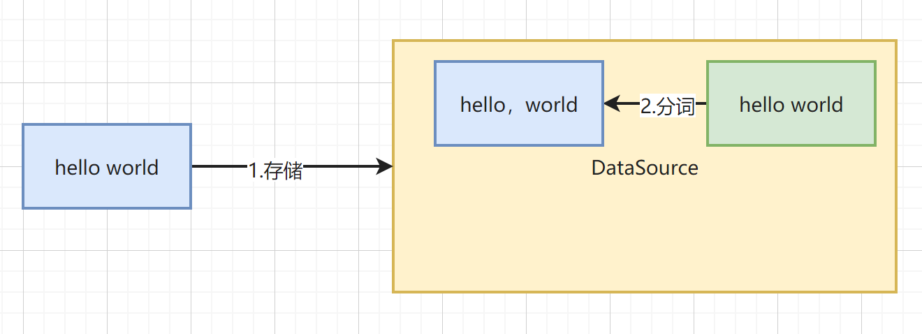 - 反向索引:内容存入数据源的同时进行分词,搜索时直接根据词组搜索: