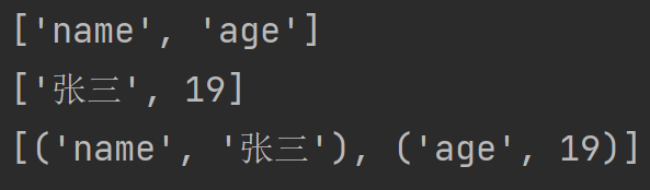 items()方法用于获取字典中所有的键值对,使用list()将它转换为元表,元表后续会介绍: