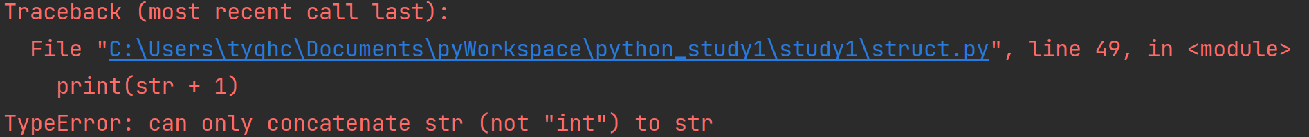 python中,字符串拼接使用+号,但数字型变量(整型和浮点型)和字符串相加会报错: