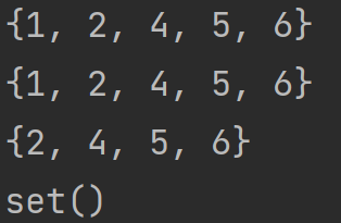 set() | 空集合:s = set() ;初始值集合:s = set([1, 2]) | |