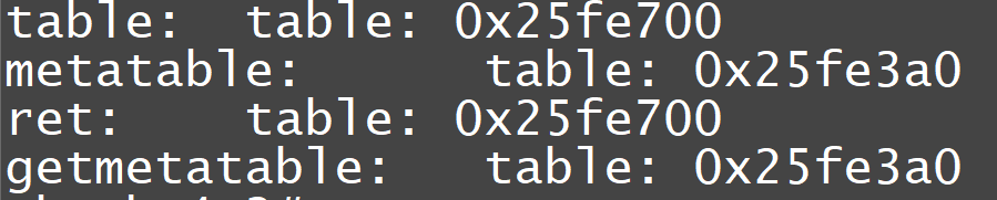 可以发现setmetatable的返回值为普通表,getmetattable的返回值为元表