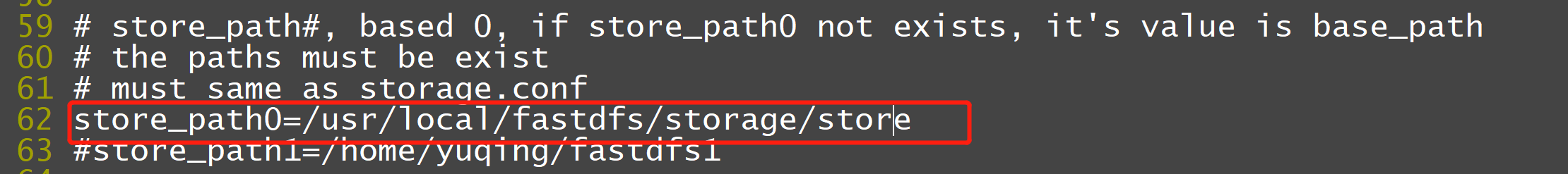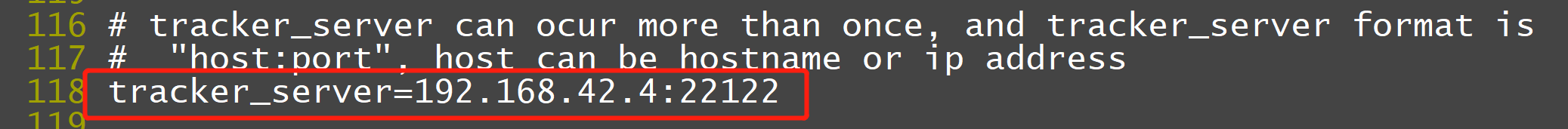指定上面创建的base和store目录路径,以及Tracker服务器地址