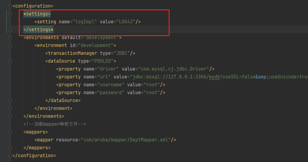 <mapper resource="com/aruba/mapper/DeptMapper.xml"/>