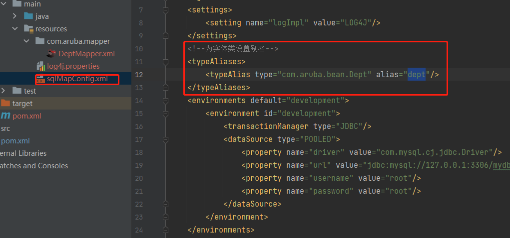 <typeAlias type="com.aruba.bean.Dept" alias="dept"/>