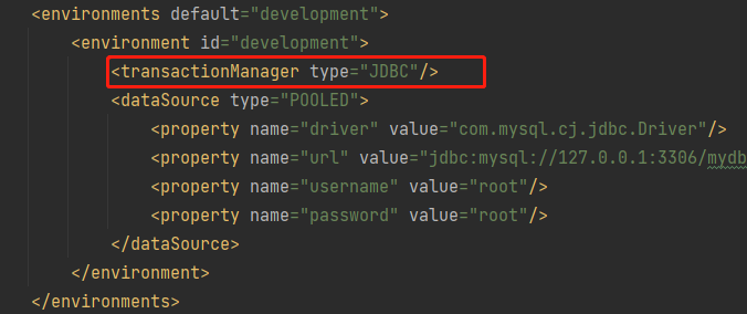 事务我们在之前就已经配置好了,在配置文件sqlMapConfig.xml的environment标签下:
