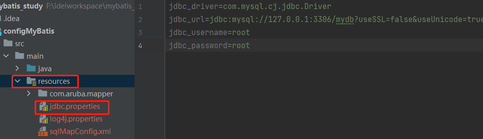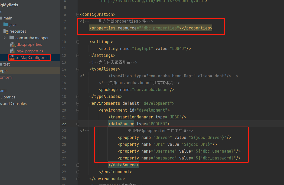 我们想把数据库链接信息存储在properties文件中,然后在MyBatis配置文件中读取