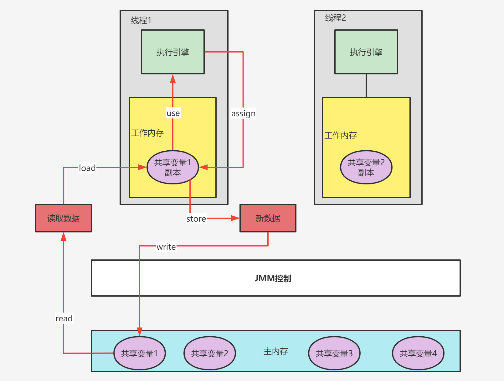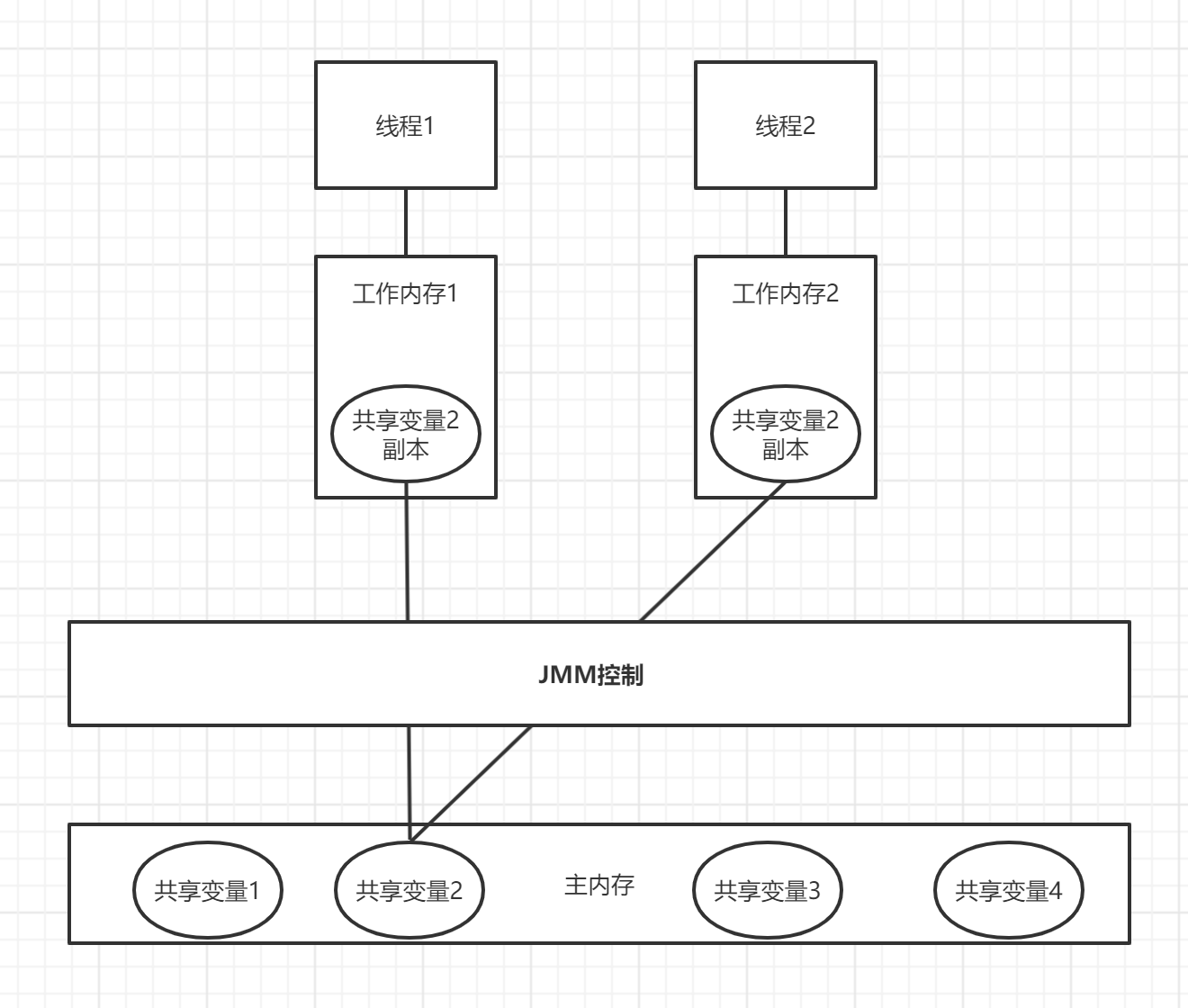 Java中每个线程都有自己独立的 工作内存,存在 主内存中的共享变量对所有线程都是可见的,即每个线程都能操作它,而实际上 线程操作共享变量时会把它 拷贝到自己的工作内存中, 真正操作的是共享变量的副本,操作结束后,再 写入到主内存的共享变量中 缺点:这就会导致如果两个不同的线程同时对一个共享变量操作时,出现不同步的问题,这也是Java并发的三大特性:原子性、可见性、有序性