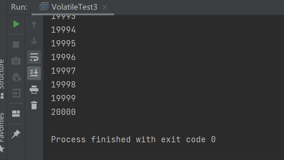 我们开启了20000次线程,对一个整型变量进行++操作,期望结果为20000,最后执行结果为: