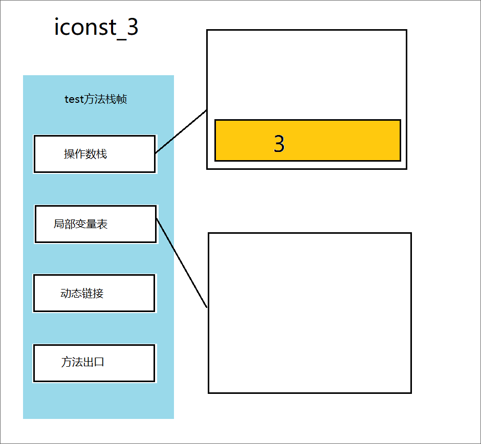 用一张gif图,来表示test方法是如何在栈帧中操作的: