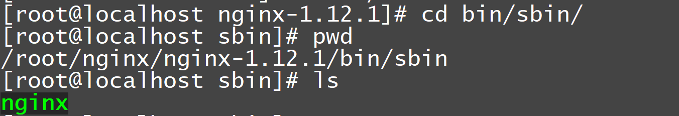 4.等待nginx安装完毕,来到bin目录下的sbin目录