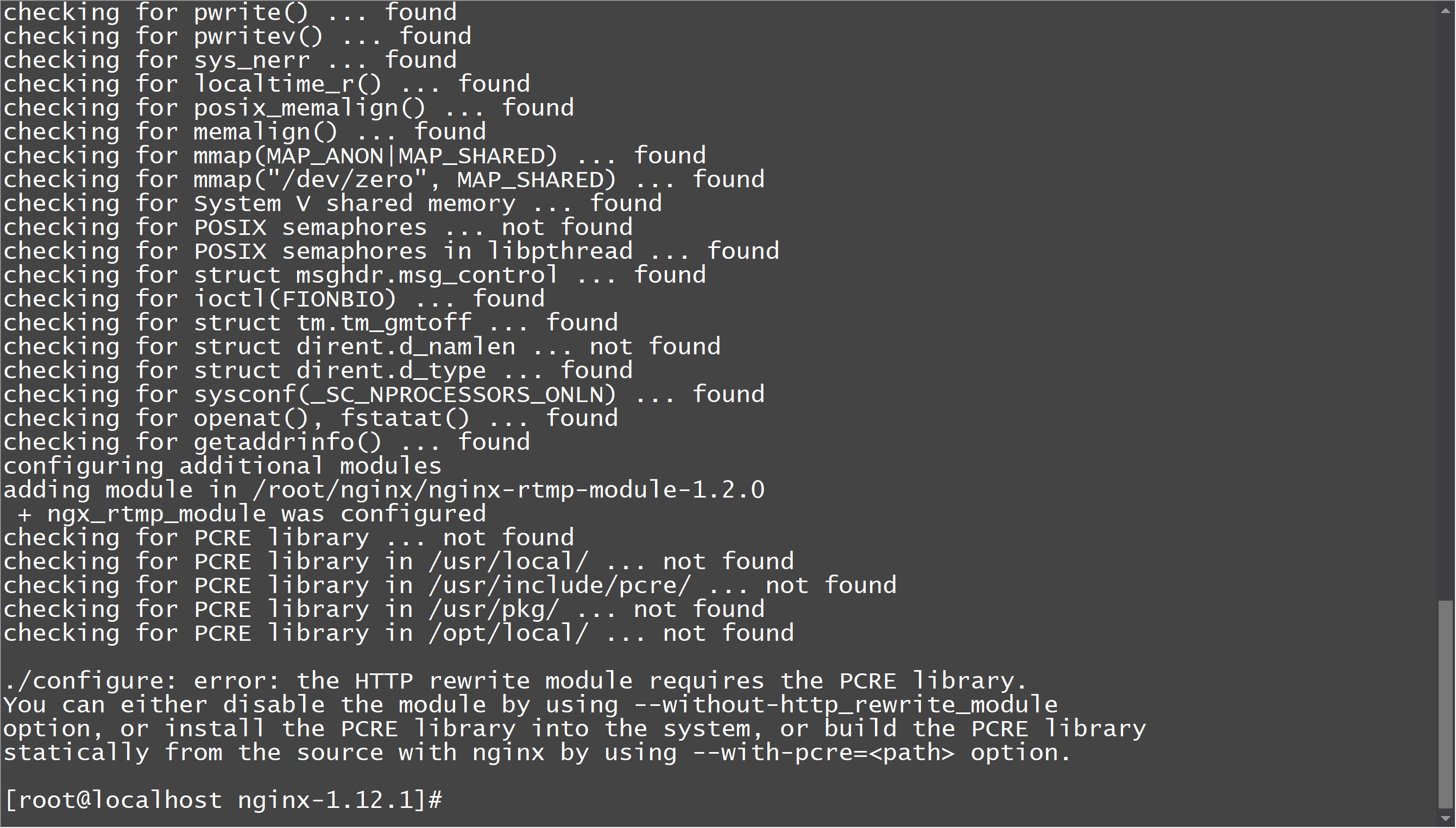 ./configure --prefix=`pwd`/bin --add-module=/root/nginx/nginx-rtmp-module-1.2.0