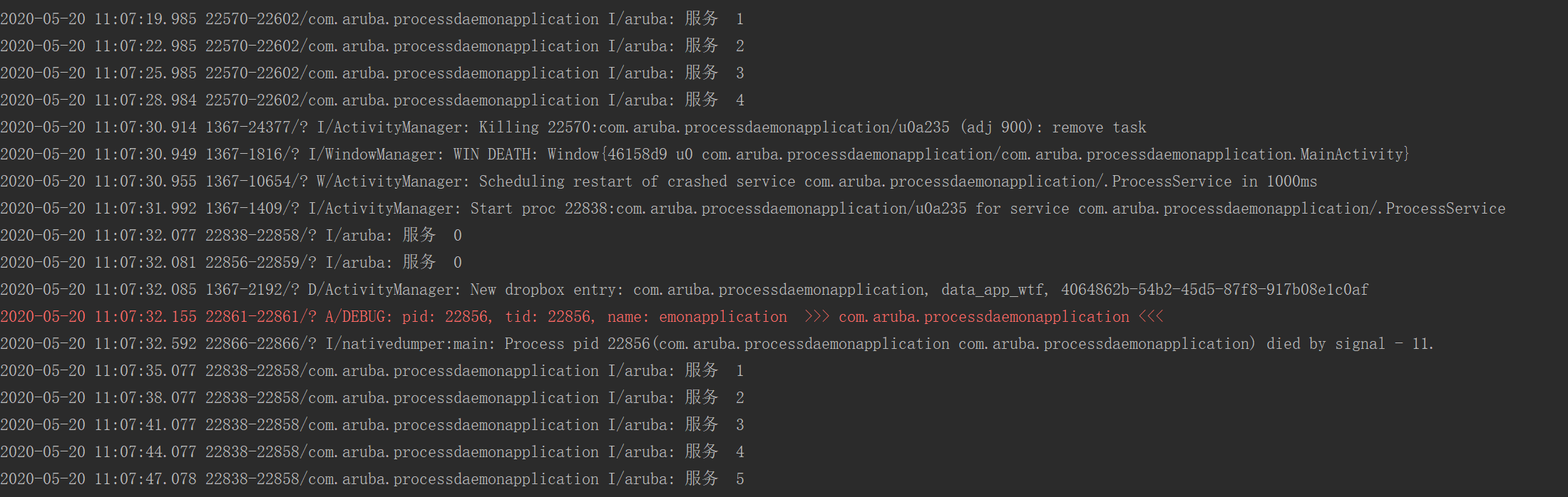 通过实验发现,如果在adb shell当中kill掉进程模拟应用被意外杀死的情况(或者用360手机卫士进行清理操作),