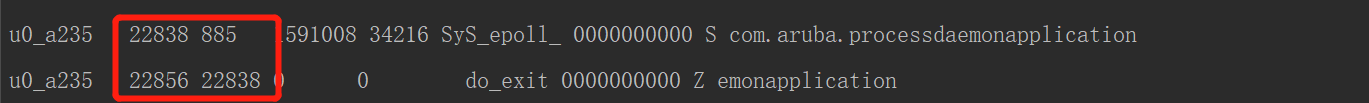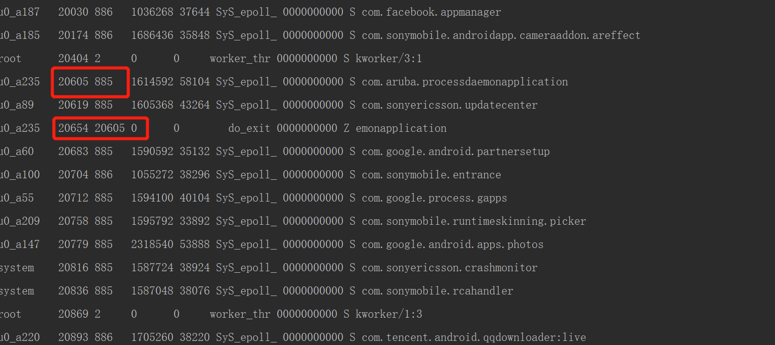 可以发现守护进程已经起来了,它的父进程pid为20605,我们手动杀掉APP,再使用ps命令查看进程