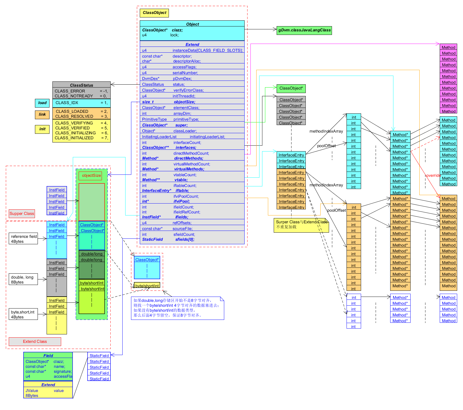 我们java的对象都继承至Object,而它其实是一个c语言中的结构体ClassObject,结构如下图: