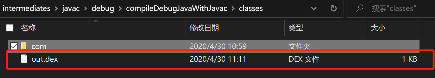 C:\Users\tyqhc\AppData\Local\Android\sdk\build-tools\29.0.2\dx --dex --output ./out.dex ./