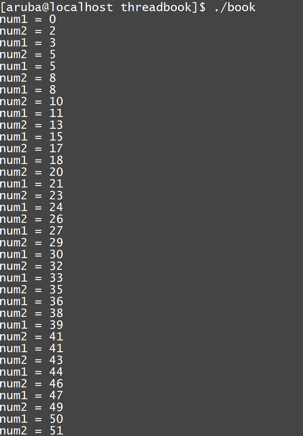 我们预想的是num1和num2是连续的,不想让其他线程影响,所以需要用到线程锁,修改后的c文件: