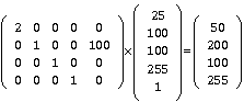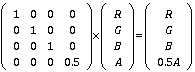 则使用4阶矩阵的乘法无法实现,所以,应该在四阶色彩变换矩阵上增加一个“哑元坐标”,来实现所列的矩阵运算: