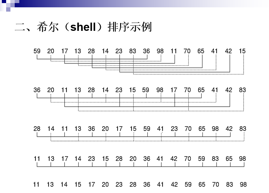 希尔排序是直接插入排序的优化不稳定,nlogn