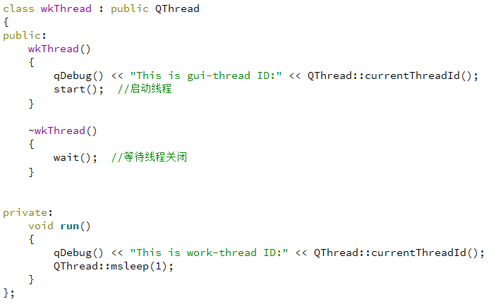 现着重说明最简单的继承QThread的方式(因为后面要用到),如下所示: