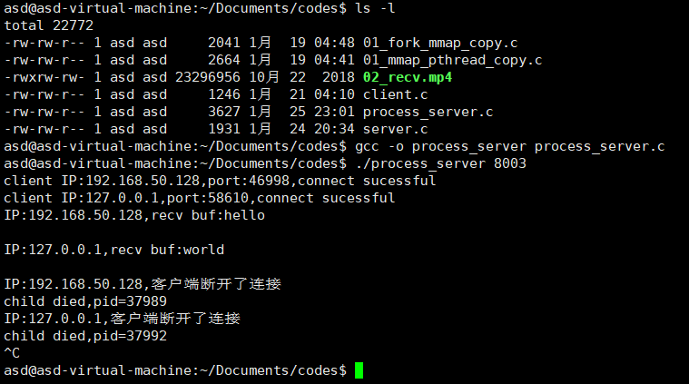 linux服务器端多进程代码---服务器/客户端一对多