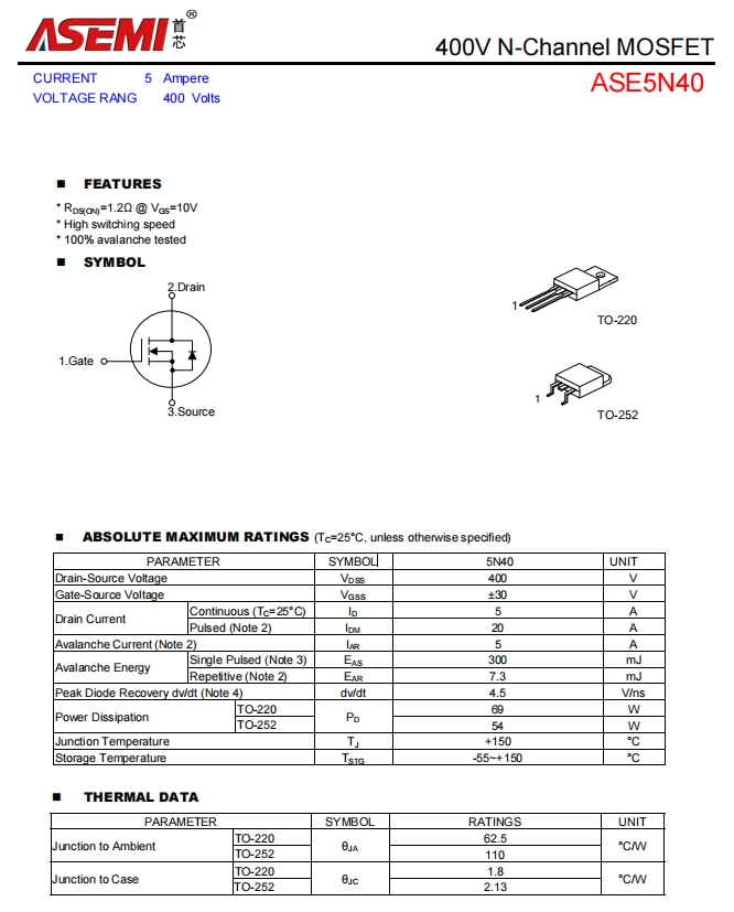 从手机充电器到服务器电源,ASE5N40凭借低损耗和高效率特性,成为高频开关电路的首选器件,助力设备小型化与节能化。