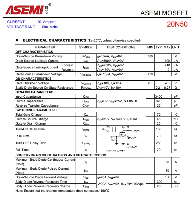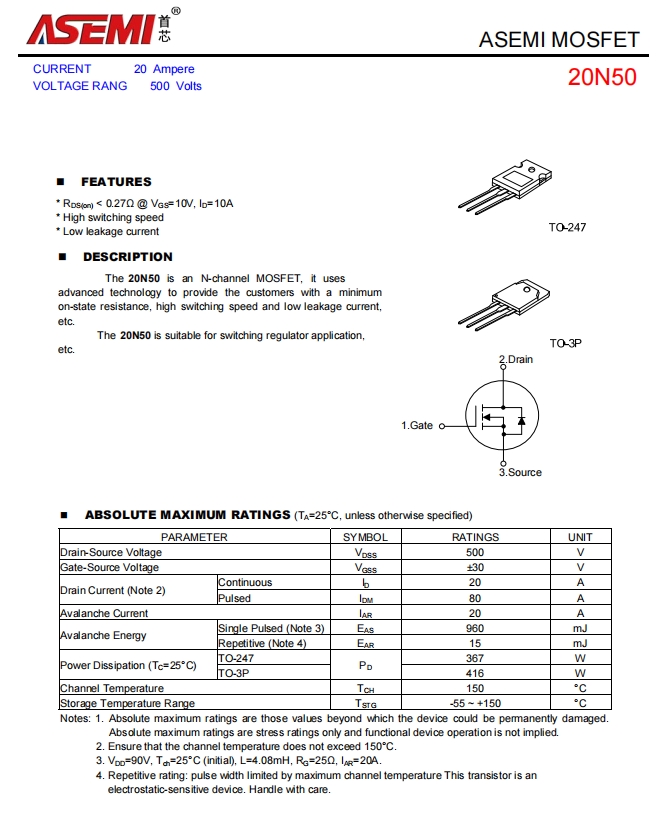 20N50-ASEMI电机驱动专用20N50
