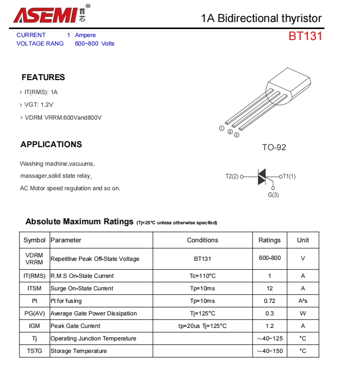 在智能化浪潮中,BT131双向可控硅以其出色的性能与广泛适用性,成为工业控制、家电制造及智能设备领域的核心器件。以下从核心技术、应用场景与产品优势三方面解读其核心竞争力。
