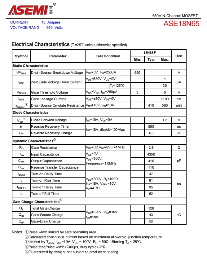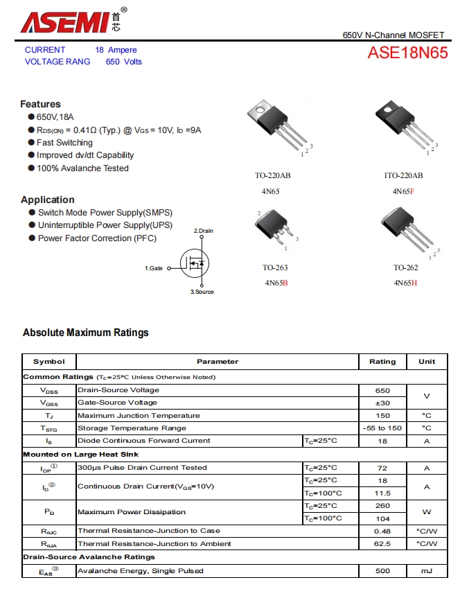 18N65-ASEMI开关电源专用18N65